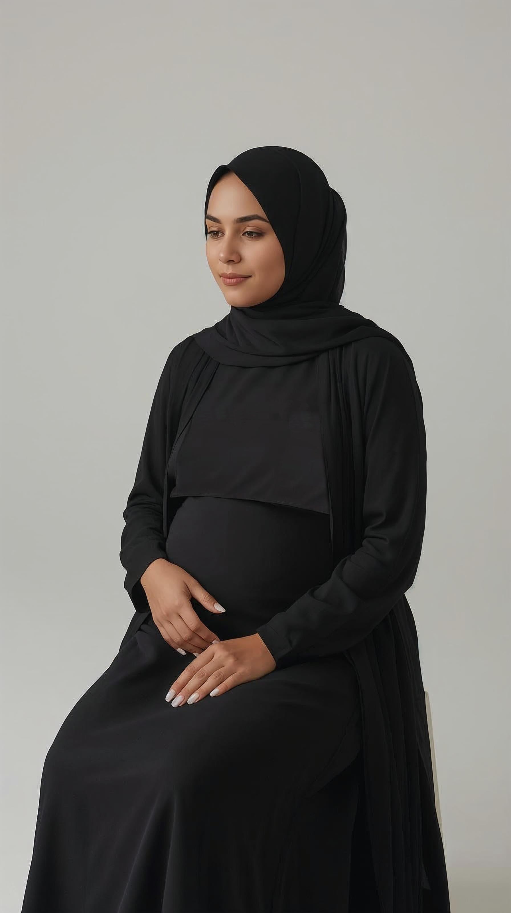 Crafted from soft viscose jersey, this timeless black slip dress is designed with comfort and versatility at its core. Its sleeveless cut makes it the ultimate layering piece — wear it under a jumper, cardigan, or open abaya to effortlessly change your look. With discreet breastfeeding access, it transforms any outfit into a nursing-friendly option without compromising on style.